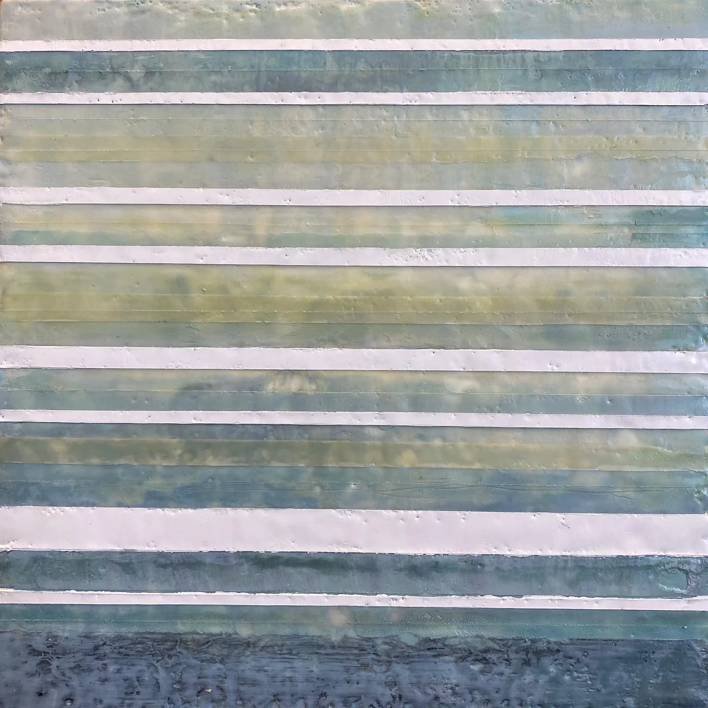 Meridian Lines, encaustic, metal leaf on panel, 16x16"